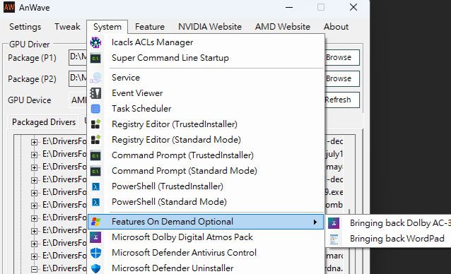 - 文件解释:有解码插件是不够的。在 24H2 中,系统会通过 Features on Demand (FoD, 按需分配功能) 策略来管理解码器的调用。 通过 AnWave 里的 “Bringing back Dolby AC-3” 选项,实际上是告诉 Windows 11:“把杜比解码器列入系统的活跃组件名单。” 这比手动修改注册表更安全,能确保解码器被原生播放器、甚至是系统自带的剪辑工具正确调用。且设置后,该软件完全可以删除。